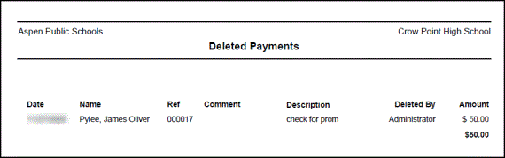 Run the Deleted Payments report to view a list of deleted payments for the specified date range: