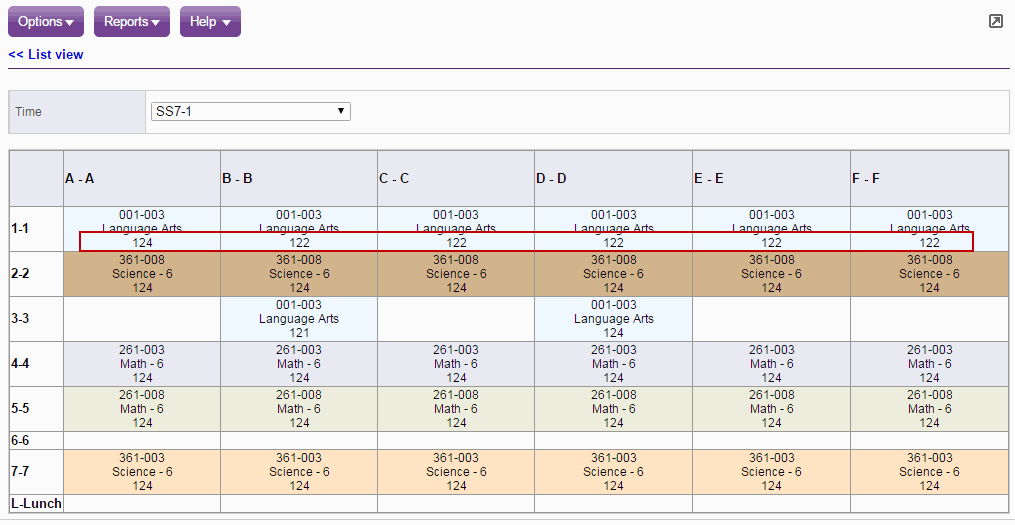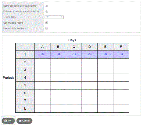 5. Repeat steps 5 through 7 to schedule a room for each day/period the section meets.