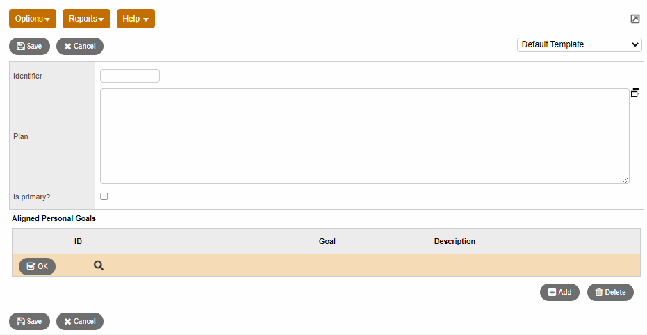 2. To add a goal, on the Options menu, click Add. The New PD Plan page appears.