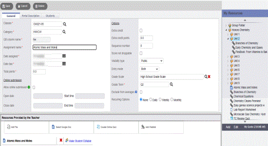 3. You can attach files, links, online quizzes, and Google Docs™ to your assignments by dragging and dropping them from My Resources.