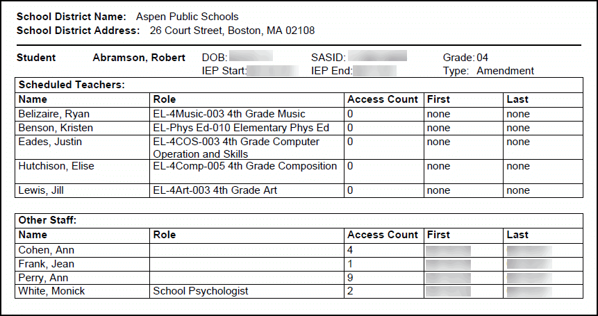 IEP Access Log by Student Report