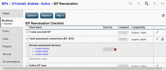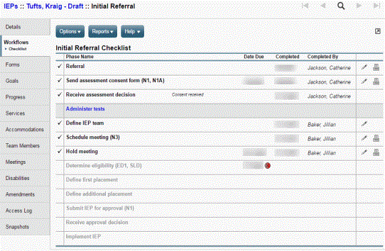 The workflow is represented by a checklist for the special education team to complete. Students who are initially referred to the program do not have an active IEPClosed Individualized Education Program until you complete all steps outlined in the checklist. After you enroll a student in special education, or renew or amend an IEP, you need to complete a checklist for the IEP to become active.
