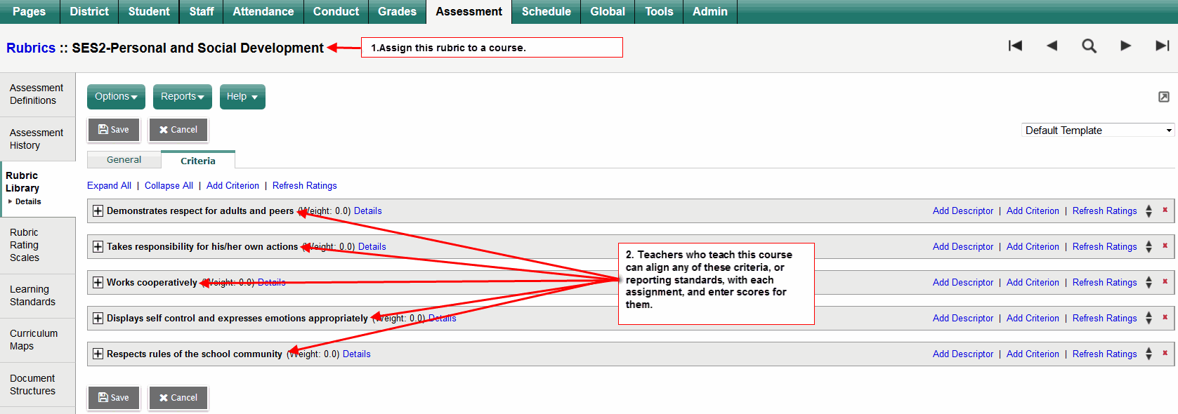 For example, if a Science class is writing an assignment on the effects of global warming, the Science teacher might align the Defend and resolve views and arguments in documents and Read and write to interpret or draw conclusions reporting standards to the assignment.