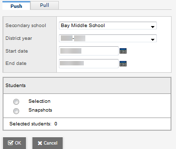 • Click Push if you are at the student’s primary school, and want to push the student records to the secondary school.