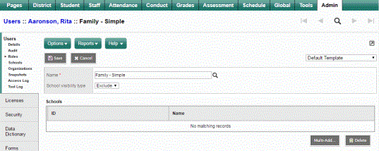 • To include a specific school: Click the School visibility type drop-down, and select Include. If you include a school here, all other schools are excluded.
