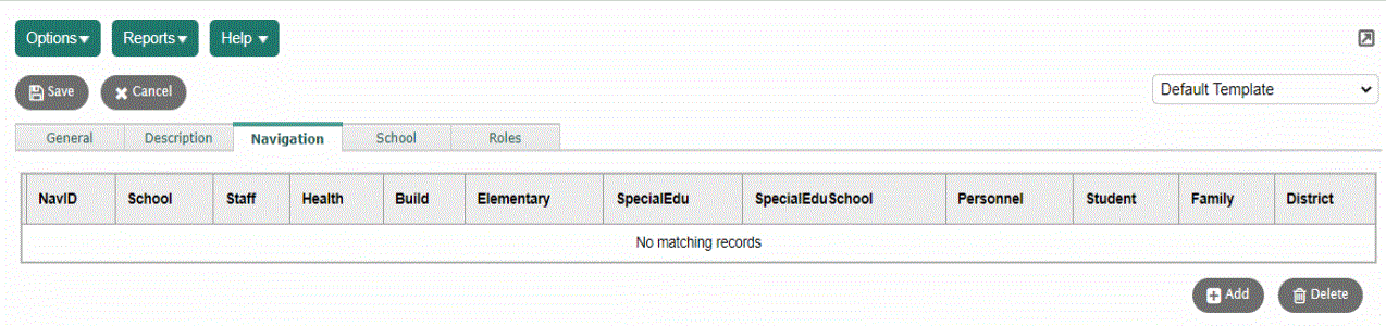 2. To define the locations, including NavID and views, at which users can run the export from the Options menu, click the Navigation sub-tab